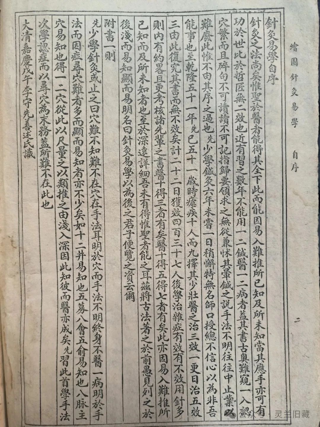 医道闳邃,明其术者,可以保身利物,故名儒硕士,咸究肄焉。然治法有二∶曰针灸,曰方药。灸法从针,其在于古,针之所不及者,而后区之为方,剂之以药,二者相辅而行,无偏废也。独其经络窍会,寻之为难。自汉唐以来,业斯术者,方家能手。专主方药,而针灸之传阙如。